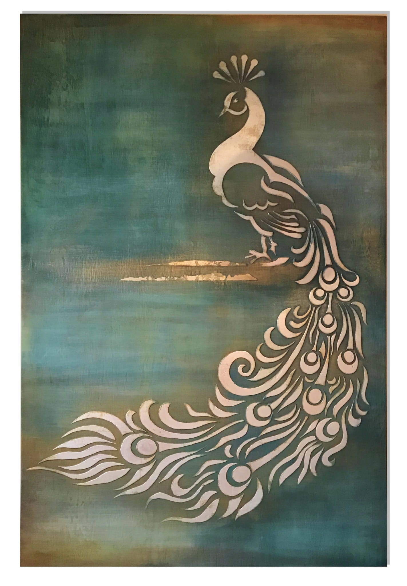 Obraz z pięknym motywem pawia, zdobionego metalem- aluminium,inspirowany naturą. Udało się tutaj uzyskać wyraźną, grubą fakturę, dającą efekt przestrzenności. Kolorystyka jak na zdjęciu. Są to głównie odcienie turkusu. Obraz jest werniksowany, dla podtrzymania trwałości powłoki przez wiele lat. Niepowtarzalne wzornictwo i kolorystyka inspirowane aktualnymi trendami wyróżniają nasze prace.Obraz powstał w oparciu o autorski projekt naszej pracowni, jest gotowy do zawieszenia. Proponowane tematy doskonale prezentują się w nowoczesnych wnętrzach. Są wykonane ręcznie.