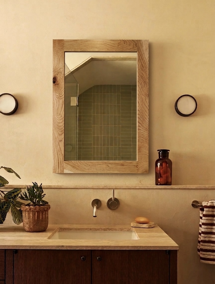 LUSTRO W RAMIE Z LITEGO, NATURALNEGO DĘBU.