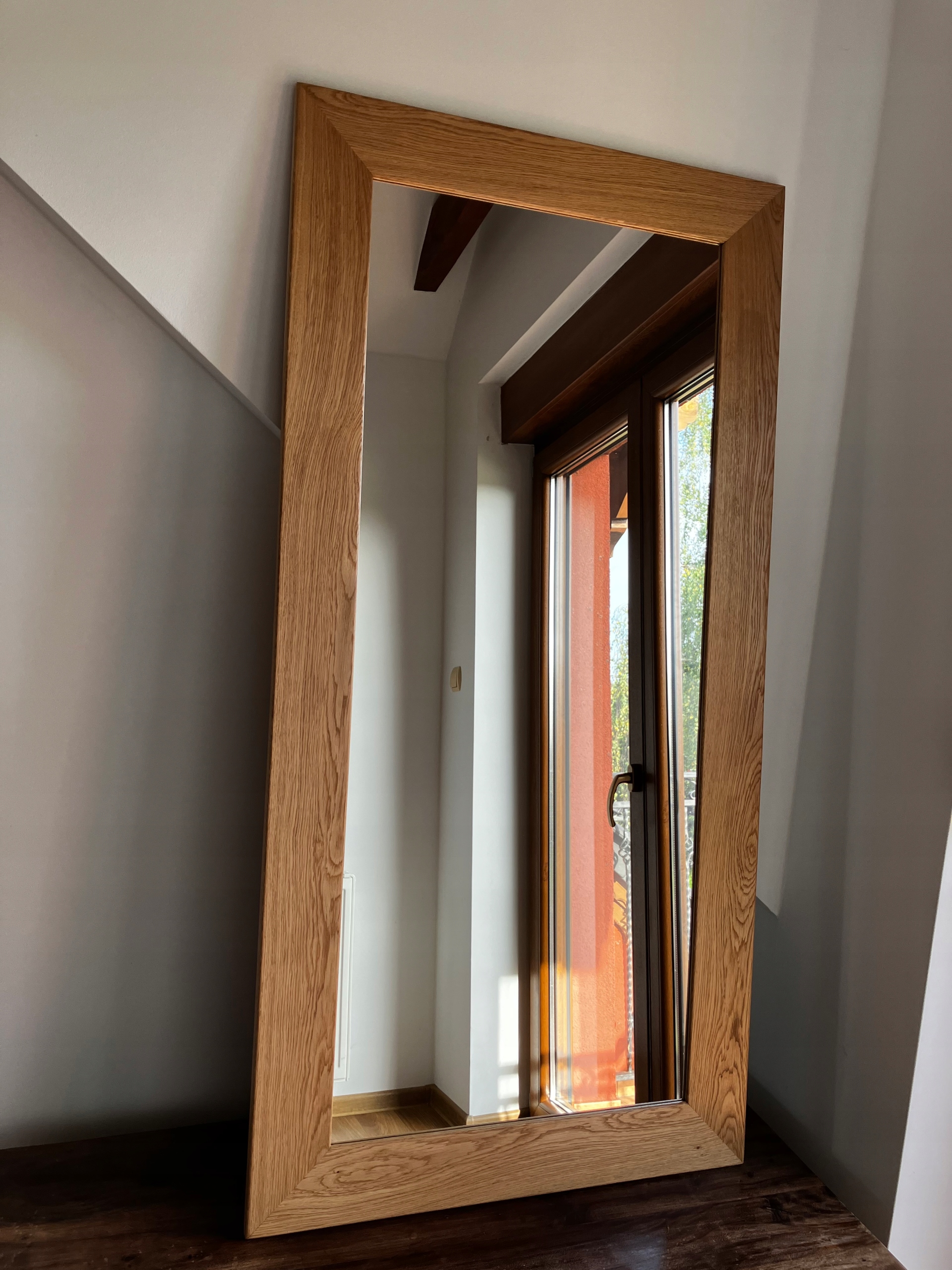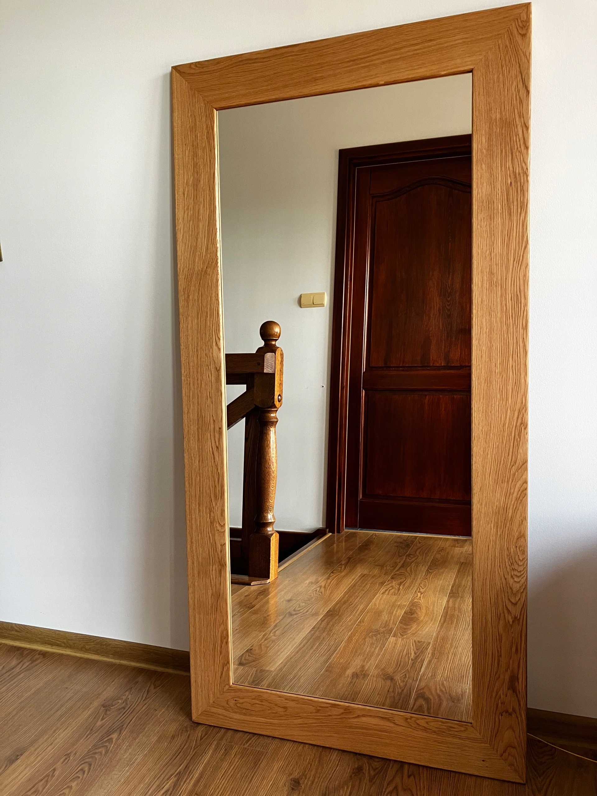 Możemy przygotować lustro w innym wymiarze oraz kolorze: dąb lakier półmat bezbarwny, dąb bielony lub grafitowy.