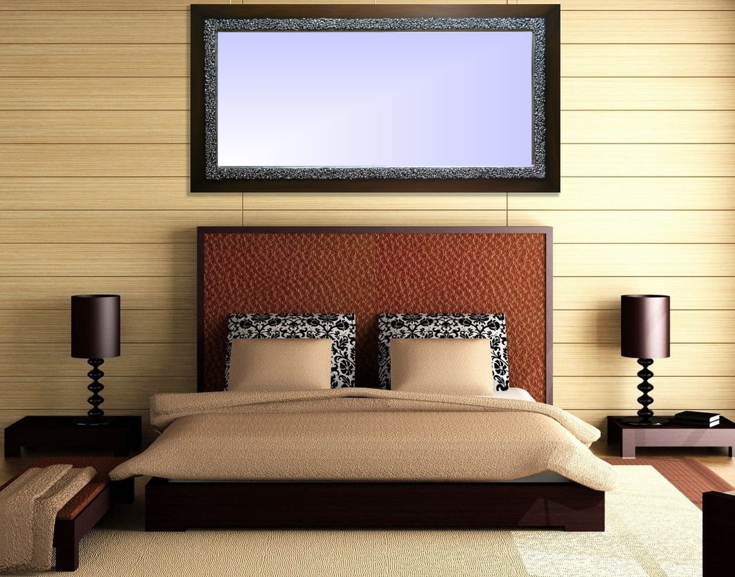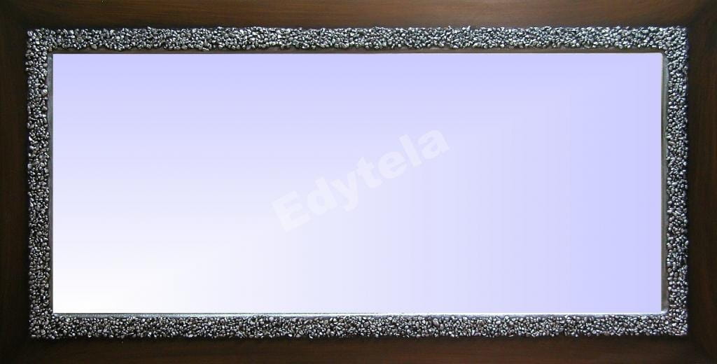 Wykonanie: Rama jest pomalowana ręcznie akrylami. Ponadto jest wysadzana naturalnymi kamieniami, dzięki czemu posiada wypukłą fakturę, co znacznie podnosi jej atrakcyjność ( widać to na zamieszczonych zdjęciach). Kamienie pokryte są farbą ( aluminium- srebro ), patynowane dla podkreślenia wypukłości. Całość zabezpieczona jest lakierem, dzięki czemu doskonale sprawdza się również w wilgotnych pomieszczeniach np. w łazienkach. Ramę możemy powiesić w pionie lub w poziomie. Tak oprawione lustro doskonale prezentuje się w nowoczesnych wnętrzach.