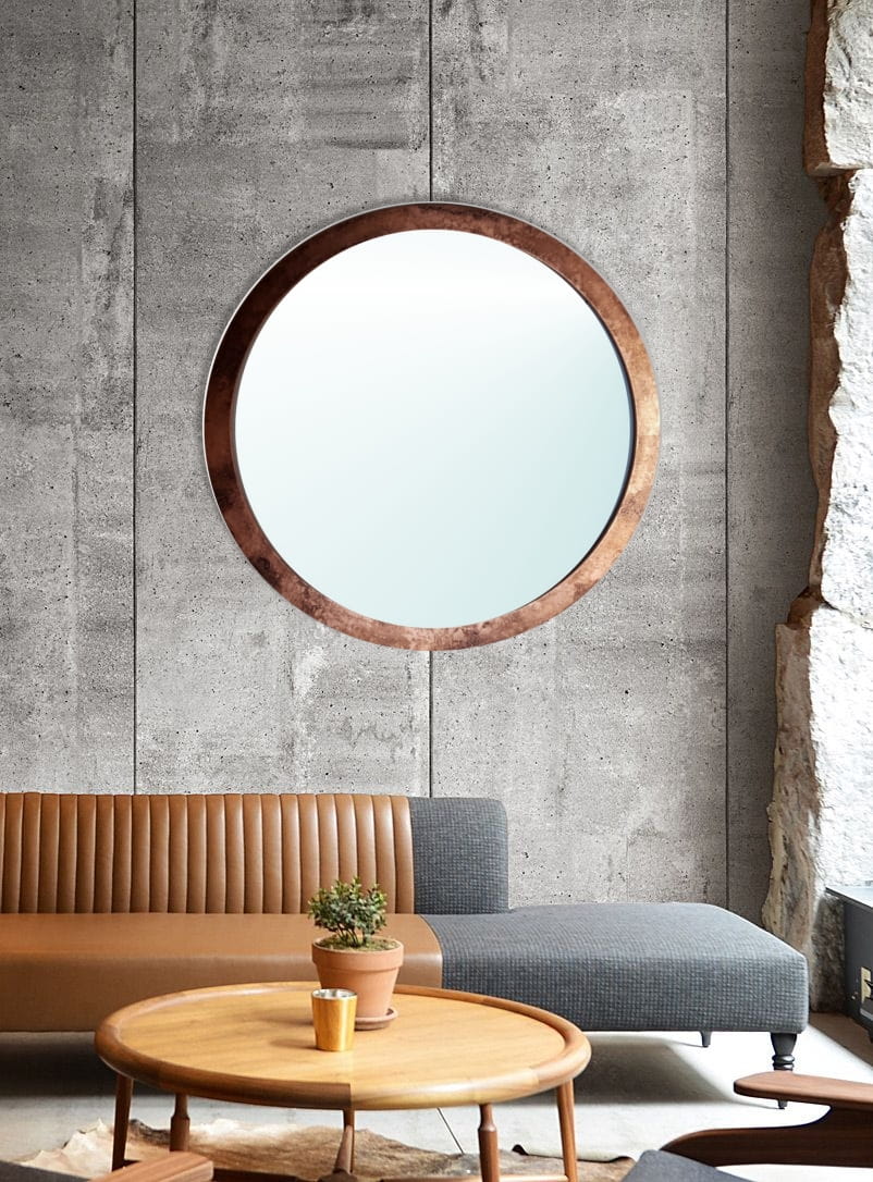 Lustro okrągłe Miedź. Wyjątkowa faktura. 50 cm