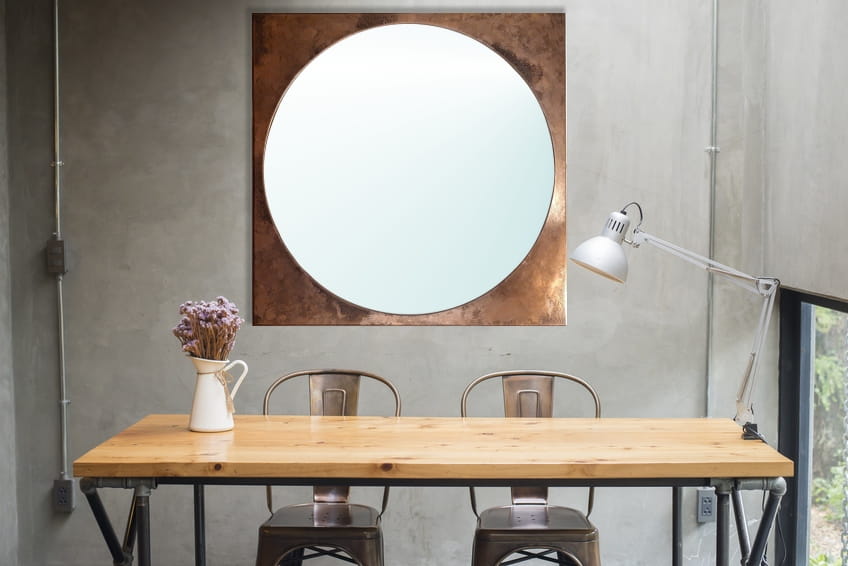 Lustro okrągłe w kwadratowej ramie Miedź. 70x70cm