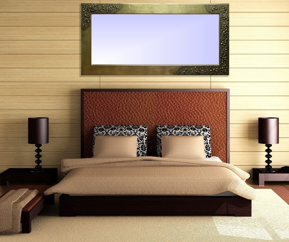 Wykonanie: Rama jest pokryta specjalną masą, nadającą jej bardzo ciekawą fakturę. Ponadto jest wysadzana naturalnymi kamieniami o różnej grubości. Całość jest pozłacana (do wyboru kolor aluminum lub miedziany) oraz patynowana, dla podkreślenia wypukłości. Patyna nadaje szlachetnego charakteru, złoto jest postarzone, nie błyszczy się zbyt mocno.Ramę zabezpieczyliśmy jest satynowym lakierem, dzięki czemu doskonale sprawdza się również w wilgotnych pomieszczeniach np. w łazienkach. Ramę możemy powiesić w pionie lub w poziomie( po zakupie prosimy o informację). Tak oprawione lustro doskonale prezentuje się w nowoczesnych wnętrzach.