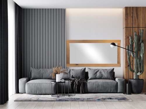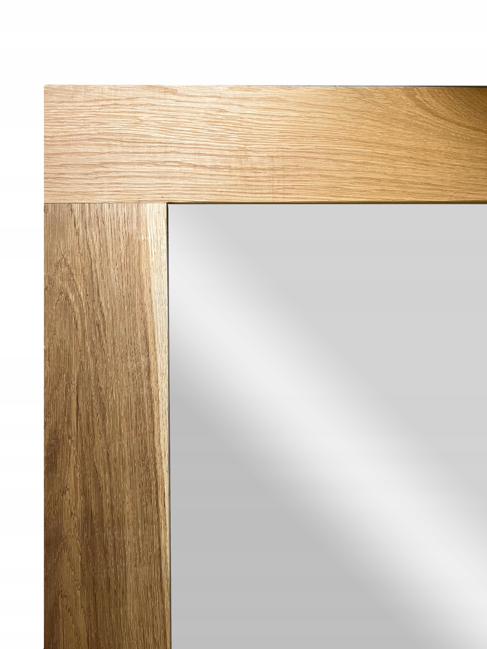 Autorski projekt pracowni plastycznej Ramoteka. Produkt w 100% powstał w Polsce. Rama lustra wykonana jest z litego dębu, posiada płaski profil. Kanty są lekko zaokrąglone. Charakteryzuje ją niezwykle piękny rysunek naturalnych słojów, to dzięki dwukrotnemu zabezpieczeniu bezbarwnym, naturalnym olejem. Lustro można powiesić w pionie lub poziomie. Doskonale sprawdzi się również w wilgotnych pomieszczeniach - łazienkach. Lustro jest duże, zatem w salonie, czy przedpokoju lub hallu optycznie znacząco powiększy przestrzeń Rama jest wykonana bardzo solidnie.Lustro w takiej ramie doskonale prezentuje się w nowoczesnych wnętrzach , na przykład z zastosowaniem betonu lub kamienia..