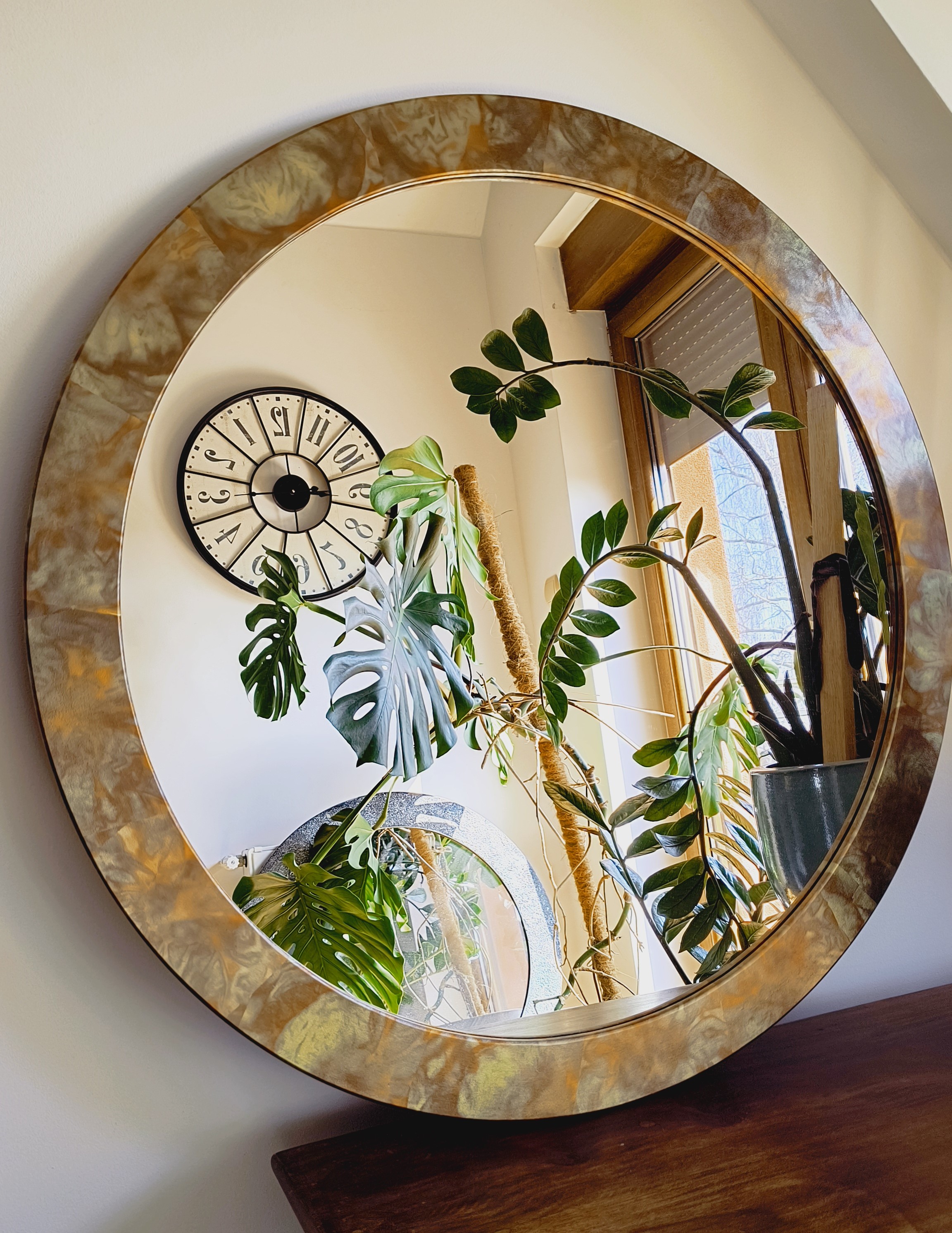 Rama lustra o bardzo nowoczesnym wyglądzie. Jest zdobiona ręcznie przez naszych plastyków.