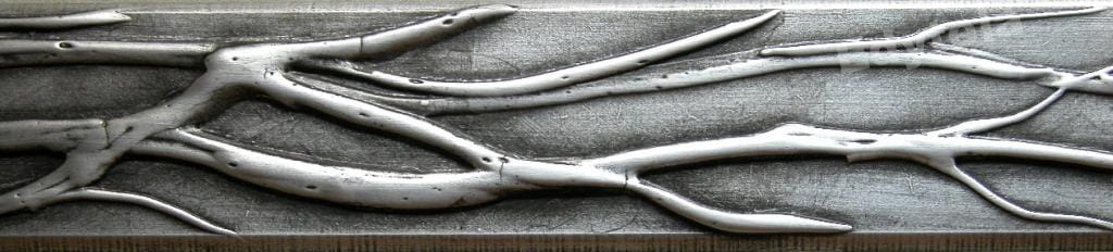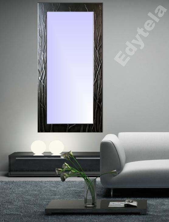 Rama lustra zdobiona jest ręcznie. Zwracamy uwagę na ekstra wypukłe dekory w formie konarów drzewa . Całość zdobiona jest metalem oraz patynowana dla podkreślenia wypukłości (kolor aluminium- srebro).Dolna część ramy jest ciemniejsza (jak na zdjęciu).Rama zabezpieczona jest lakierem, dzięki czemu doskonale sprawdza się również w wilgotnych pomieszczeniach np. w łazienkach. Stosujemy lustra kryształowe, renomowanej firmy. Rama posiada płaski, nowoczesny profil.
